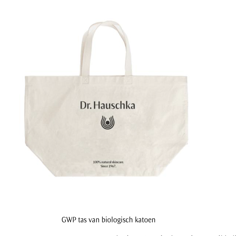 Model 2 is gemaakt van biologische eco katoen, is naturel van kleur met Dr.Hauschka logo en is ongeveer 60 x 36 cm.