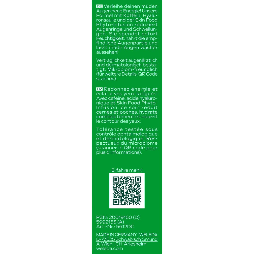 Geef je vernoeide ogen weer energie! Deze formule met natuurlijke cafeïne, hyaluronzuur en Skin Food Phyto Infusion vitaliseert en verzorgt de oogcontouren en vermindert wallen, donkere kringen en tekenen van vermoeidheid. De crème trekt snel in, hydrateert onmiddellijk en voedt de gevoelige huid rondom de ogen. Zo heb je snel weer een wakkere blik. De Skin Food Super Oogverzorging uit de Skin Food-lijn geeft vermoeide ogen nieuwe energie. Dankzij de formule met cafeïne, hyaluronzuur en Skin Food Phyto-Infusion hydrateert en voedt het de tere huid. Voor een frissere oogcontour!